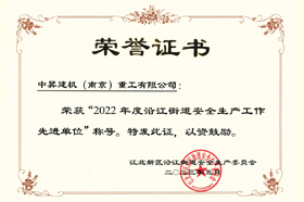 關于表彰2022年度安全生產(chǎn)工作先進單位和先進個人的決定 為表彰先進,進一步推動全街安全生產(chǎn)工作,經(jīng)街道安委會研究決定,對中昇建機(南京)重工有限公司等5家安全生產(chǎn)工作先進單位。 |